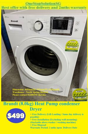 Brandt (8.0kg) Heat Pump condenser Dryer ($499 + Free Delivery and 2mths warranty)