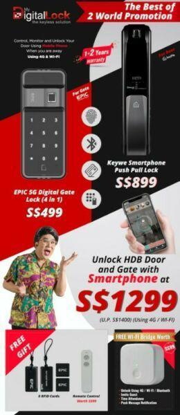 Epic 5G digital lock for gate with Keywe push pull Free Wifi- bridge at $1299 Call 91616282