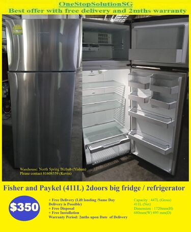 Fisher and Paykel (411L) 2doors big fridge / refrigerator ($350 + free delivery and 2mths warranty)